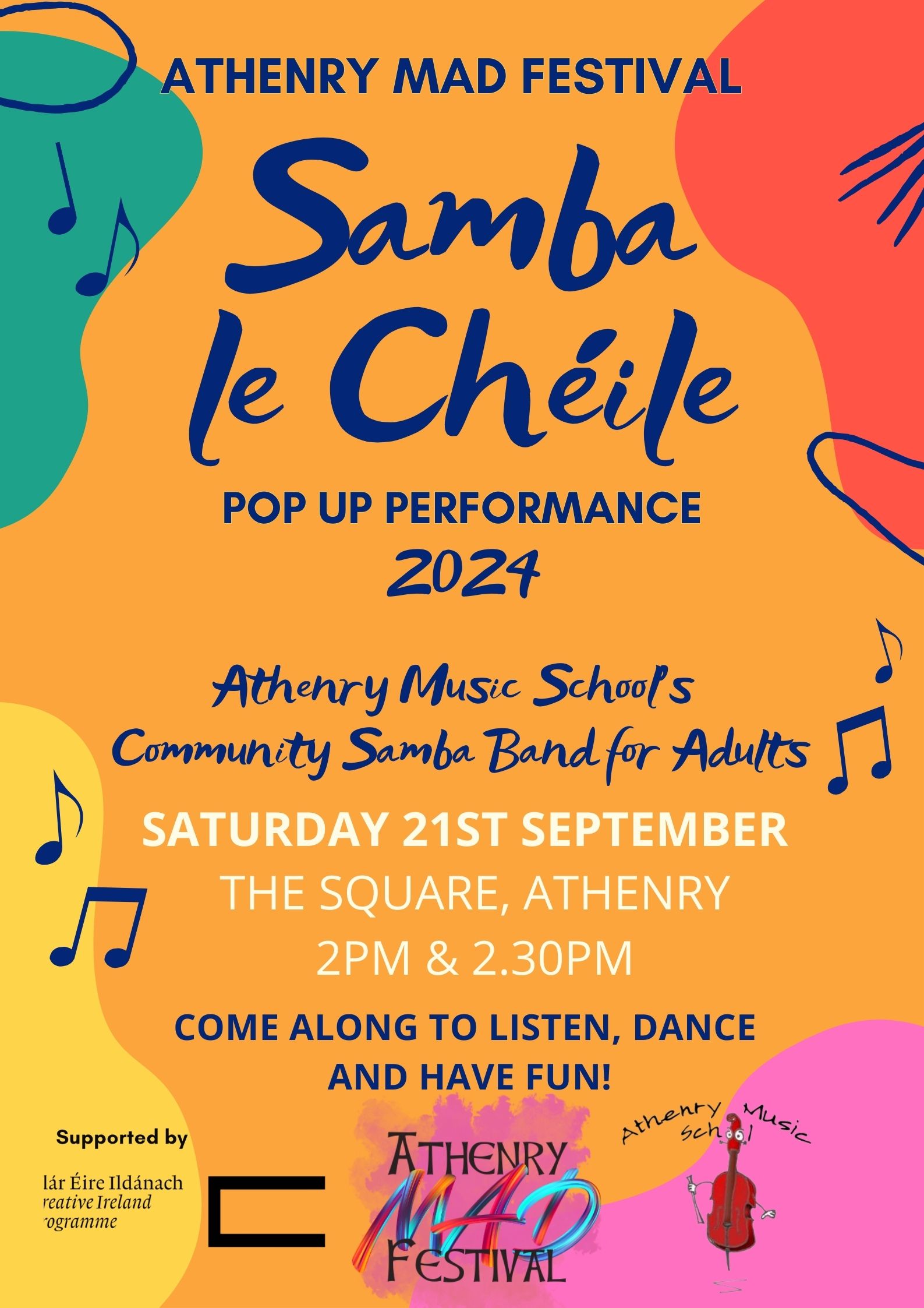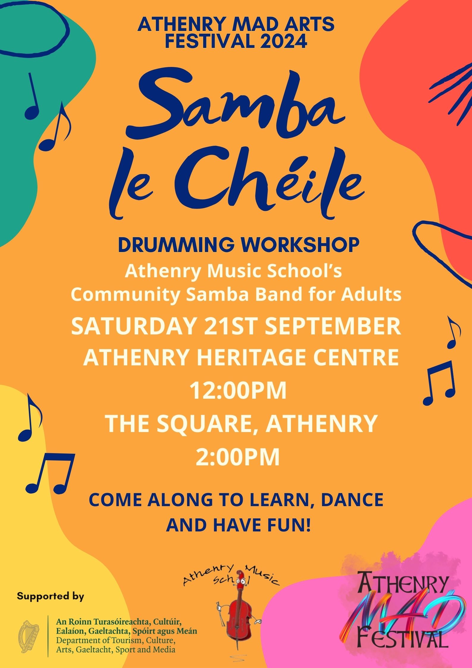 The Athenry Music Schools Samba le Cheile is the ideal opportunity to meet new friends and learn a new skill whilst having fun.