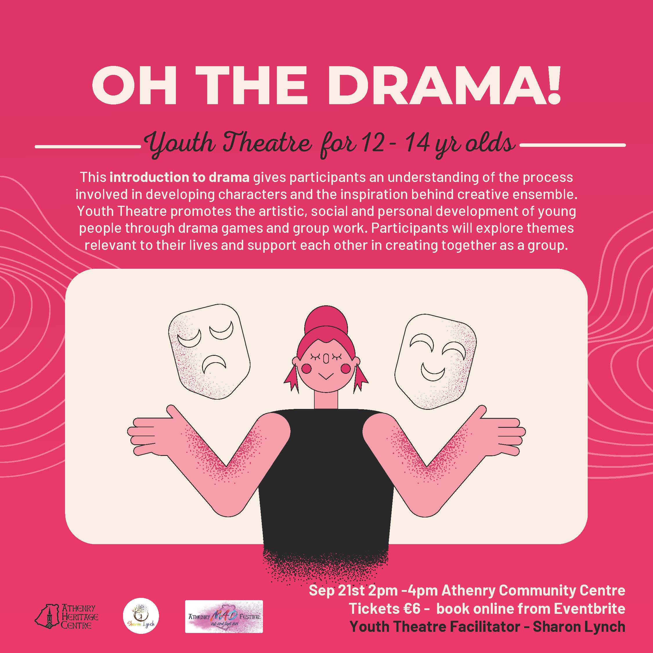 Our teens are spoilt for choice with this years festival as Drama Facilitator Sharon Lynch presents a Youth Theatre Workshop Community Hall in Athenry from 2:00pm-4:00pm.